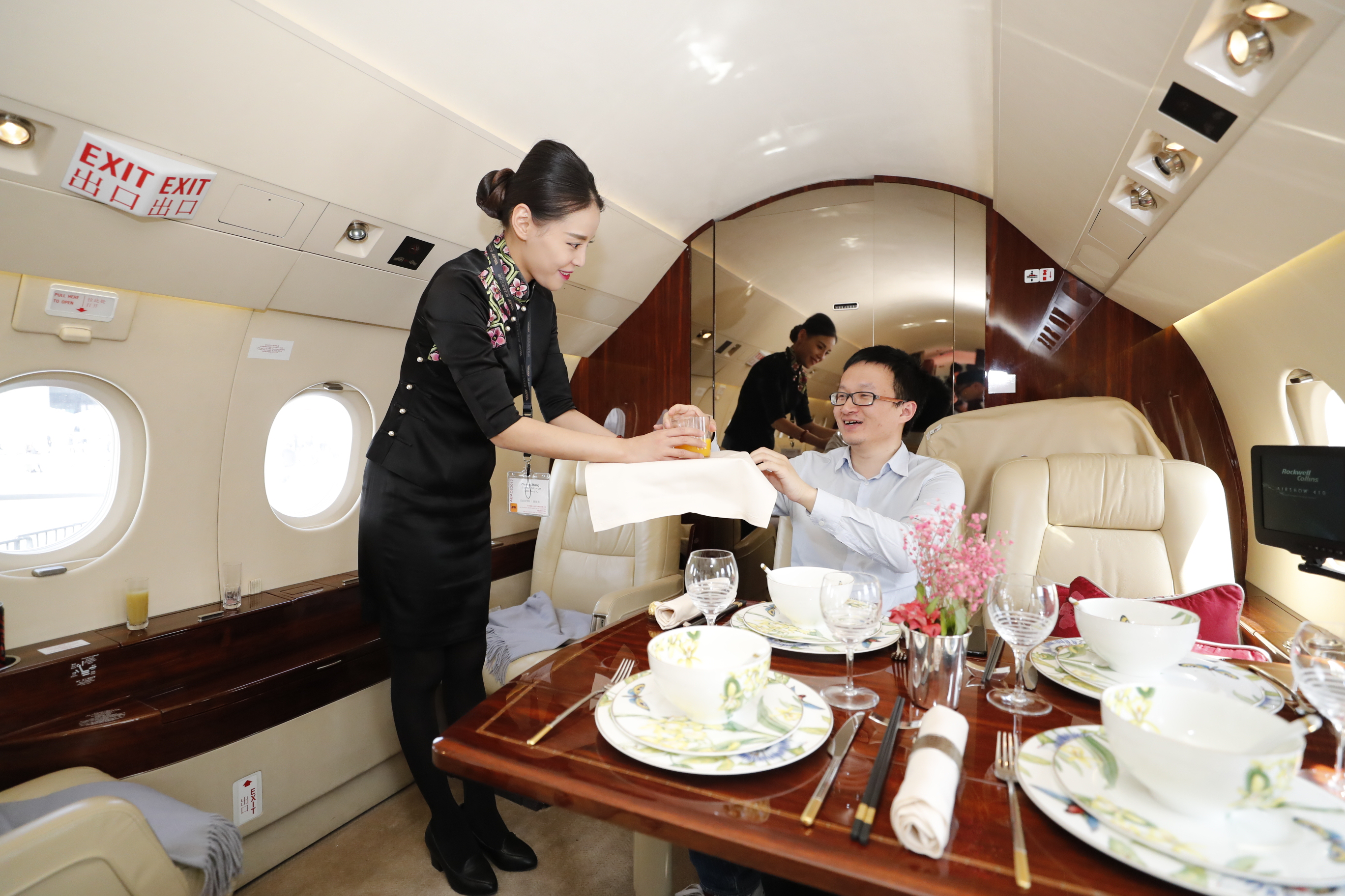 Falcon2000EX(猎鹰2000)飞机机组提供的高质量的机舱服务也是精工高杰公务机的特色之一