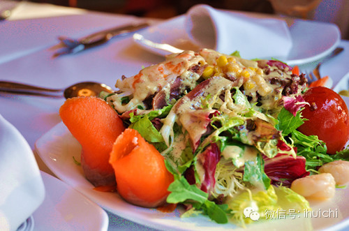 餐厅的海鲜色拉选用的是新鲜的有机生菜,非常营养健康,因此颇受客人们的欢迎。——三文鱼卷、蟹肉、烤玉米、凤尾鱼、腌西红柿、凯撒色拉酱一起拌匀,清爽的口感,多样的滋味,无论什么时候都让人心情愉快。