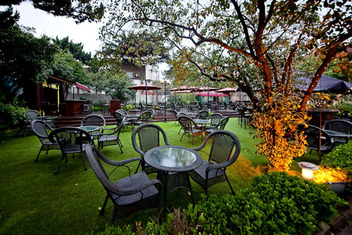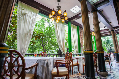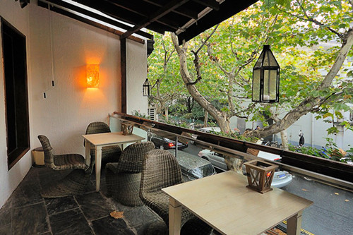 藏身在法租界永福路,两旁古木参天,主楼原是上个世纪三十年代的一座两层楼老式洋房,曾经是英国领事馆,几经辗转最后在汪兴政手上精心策划重建,才有了今天的全新模样,有着考究的各种小细节,俨然成为一家博物馆式的高档花园餐厅。庭院里的冬青没有修剪成笔直的线条,它们自然随意甚至透出一种萧索;游廊露天,桌椅不循规则,深色的帘幕似有若无,你可以在庭院里肆意地躺在一张清代的鸦片床上把酒贪欢,也可以坐在完全西式的银餐具中间细细把玩清代那些匪夷所思的三寸绣花鞋。