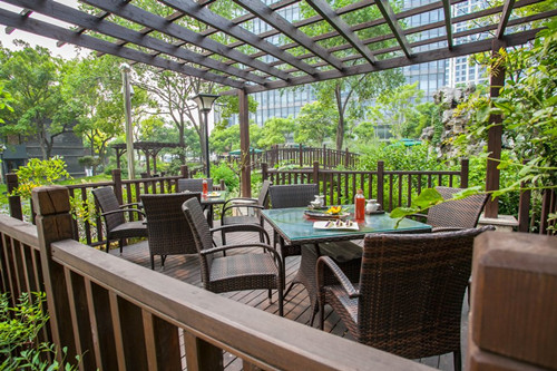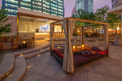 XTD Elevated露天酒廊位于新天地朗廷酒店五层,如此大面积的露台在市中心属于稀有。设计富有南美风情,石质的露台点缀以木制的四角柱式床、灰色织物以及美丽的凉亭,舒适惬意、景观迷人,轻纱幔帐的座位和美丽的凉亭为这座城市又增添了一个时尚夜生活的好去处。位于楼顶之上的露台,让您远离尘世烦嚣,同时沐浴于新天地的光华之中。桌椅之间的宽敞距离,没有摩肩擦踵的拥挤,轻松休闲,享受美酒美食。