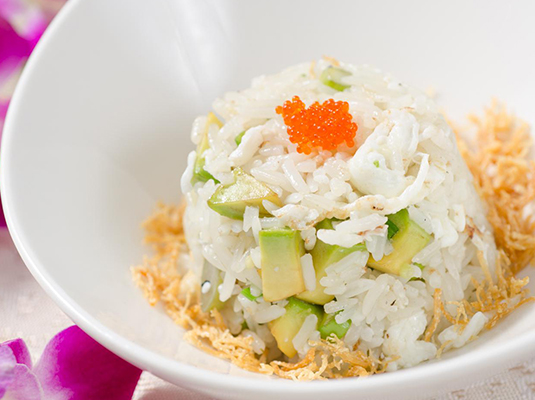 纯用蛋白炒制的炒饭将食材各自的原味都逐一展示,牛油果、腿茸与米饭自成一方风味毫不遮掩互相的本味。却就是这看似简单的搭配与烹饪在口腔中创造了独具层次感的清香口感,造就了这款炒饭佳肴。