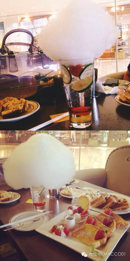 白云飘飘系列哈可爱!上面顶着一个超级大的棉花糖,下面的饮料有青柠、拿铁、巧克力三种口味。