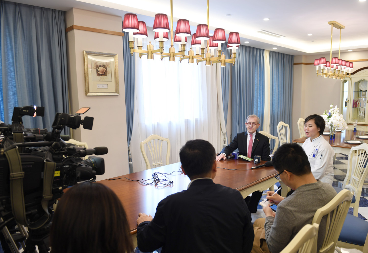 2019年4月27日,蓝带国际学院上海校区(以下简称“蓝带上海”)四周年庆典活动于蓝带上海校区盛大举行。此次庆典活动为公众揭开这座世界最著名的厨艺餐旅学院的神秘面纱,以此不断提升公众对法餐文化的认识和理解,并不断结合自身的发展优势,促进东西方餐饮文化的交流与融合。蓝带国际总裁安德烈·君度(M. André J. Cointreau)先生和蓝带上海校区校长李小华先生出席此次活动。社会知名人士、蓝带合作伙伴、历届校友,以及多家媒体朋友们也应邀参加,更有“神秘大咖”林依轮的加入,共庆这一特别时刻。