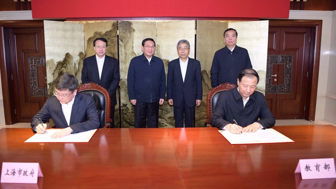 教育部副部长孙尧、上海市副市长陈群代表双方签署了《教育部 上海市人民政府共同全面深化上海市教育领域综合改革战略合作协议(2021-2025年)》。