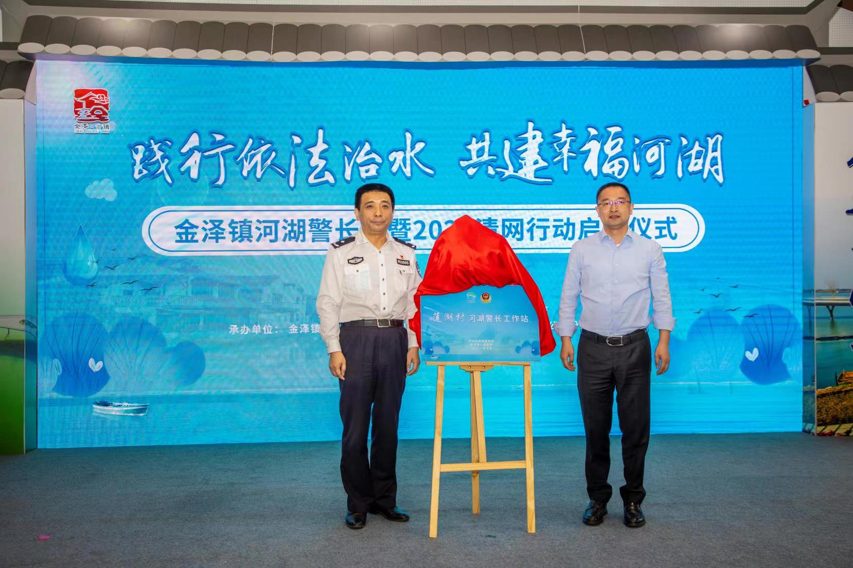 活动现场,华钢、孙茂共同为莲湖村“河湖警长工作站”揭牌,标志着金泽镇成为全区内首个实现河湖管理“双长”联动工作的街镇。