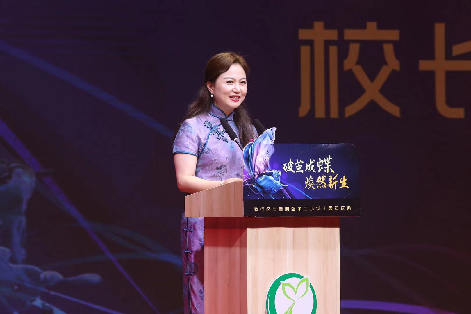 郭校长代表全体师生员工,向参加庆典的领导与嘉宾表示热烈的欢迎。她回顾了学校办学十年来取得的显著成绩,向一路支持学校发展的各级领导、共建单位、教育同仁表达了诚挚的感谢。她表示,未来十年,学校将继续探索学校内涵发展之路,探索未来学校新样态,通过教育的力量让每个孩子的生命变得更加美好。