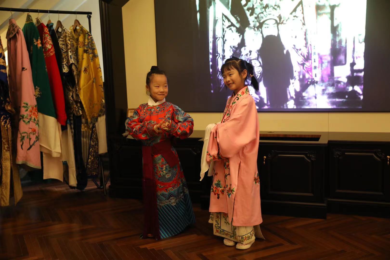 活动中,剧院“京彩益行人”志愿服务队成员们化身为讲解员,为小朋友及家长们带来了一次内容丰富的京剧文化体验,在游览馆藏过程中,让他们了解了一代宗师周信芳的故事以及上海京剧传习馆这座老洋房的历史和如今的功能作用,领略了京剧头面、绣品、舞台场景模型等物件的艺术魅力,并通过京剧服装讲解等形式感受了京剧艺术的台前幕后。值得一提的是,活动最后还精心安排了一堂有趣的京剧体验课,现场氛围热烈。