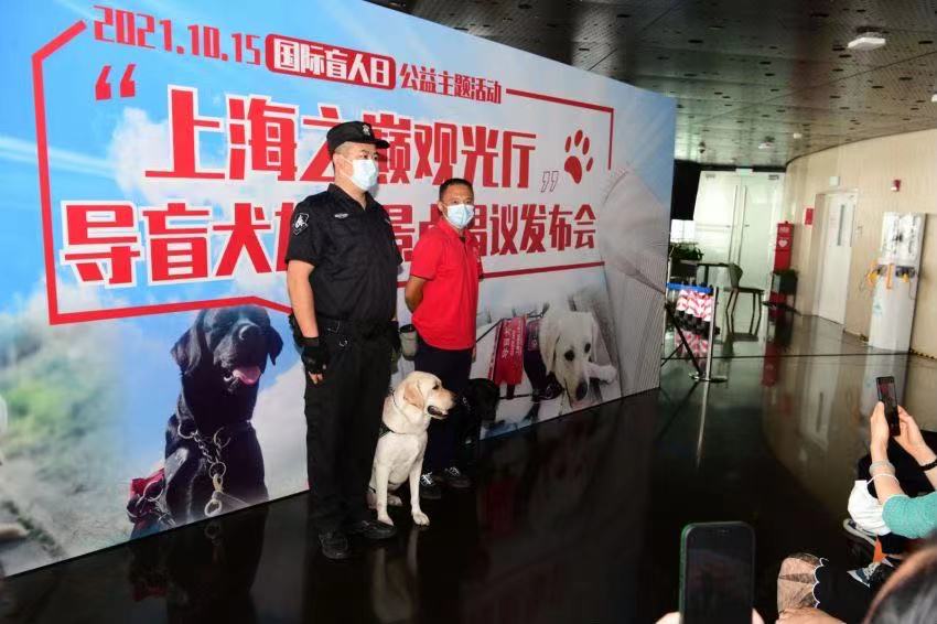 第38个“国际盲人日”来临之际,上海中心旗下文旅品牌“途时TOUR632”今天在上海之巅观光厅开展 2021国际盲人日导盲犬体验活动,宣布上海之巅观光厅成为导盲犬友好景点,旨在激发大众对导盲犬有更多的了解、尊重、包容和接纳,为视障人士提供方便。