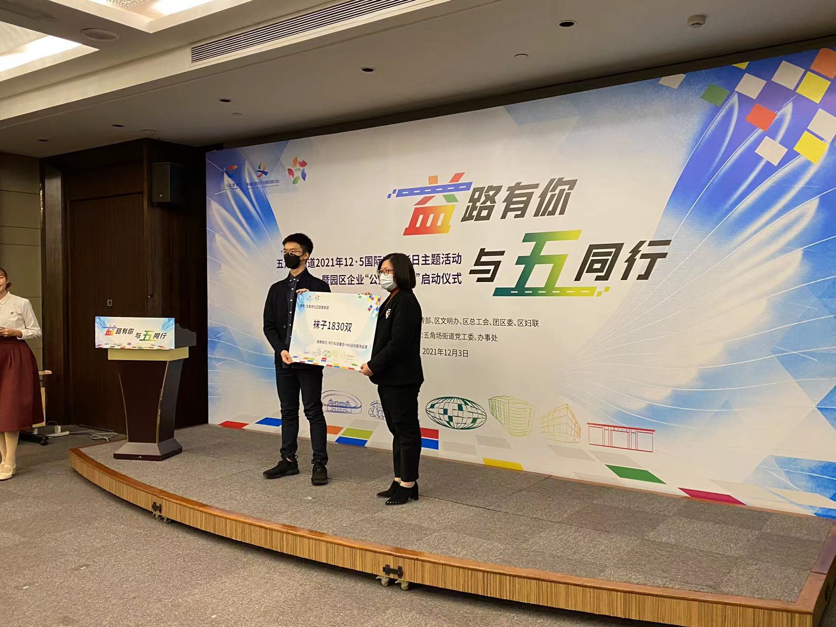 现场,三组公益项目结对,通过资源共享,共同助力公益五角场建设。主打运动和保健功能性袜子品牌的华尔科技集团也在活动上定向为五角场社区特困供养老人和其他困难家庭捐赠1830双爱心袜子。近年来,五角场街道充分发挥商区、校区、园区、营区、社区五区平台优势、资源优势、联动优势,在社会各界的大力支持下,志愿服务品牌项目不断扩容,志愿服务队伍不断壮大。活动中,2021—2022年度五角场街道12个志愿服务优选项目一一亮相,上海哔哩哔哩科技有限公司、上海红蚂蚁装潢设计有限公司、“众鑫有话”理论宣讲团、胖虎流浪动物互助会、博斯腾科技有限公司、吉浦一居民区以及创智坊居民区志愿服务队等新一批五角场新时代志愿服务队代表获授旗。