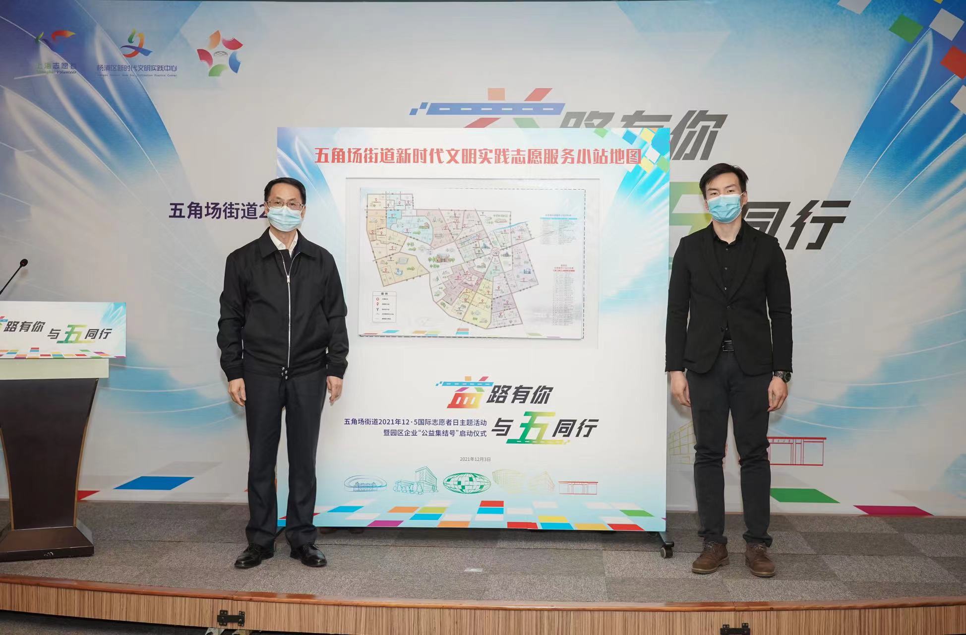 值得一提的是,五角场街道设立了1+32+15+Y的志愿服务小站体系,以点带面,弘扬志愿精神,传播服务理念。本次活动也首次发布了《五角场街道新时代文明实践志愿服务小站地图》,标注了五角场街道辖区内分布的近50个志愿服务站点,借此打通志愿服务体系的“最后一公里”。