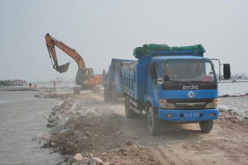 在通往上下游堤坝溃口的道路上,长达十余里、只有一车宽的土石路成为制约封堵渣土石料运送的的难题。救援队提前勘测好长达十余里的行进路线,仔细标注好每一处较宽区域,采取“定点管制、按况扩宽”的方法,将较宽区域进行进一步拓宽形成会车路段,将长距离窄路的路段分段修筑会车平台,并派遣道路疏导员进行车辆会车疏导,大大提高了运渣车辆通行效率。