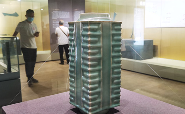 ▲南宋龙泉窑青瓷琮式瓶 1991年四川遂宁南宋金鱼村窖藏出土