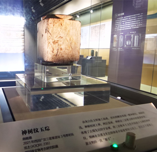 “在良渚文化同时期,玉琮就扩散到长江、珠江和黄河下游广袤的区域。良渚文化衰落后,玉琮的扩散几乎遍及了大半个中国,以不同形态在各地的玉器手工业体系中延续发展,表现出强大生命力。”董淑燕介绍说,本次展览展出了广东韶关曲江马坝石峡遗址出土的玉琮,石峡文化玉琮是目前新石器时代玉琮的最南发现。另外,展出的还有2021年四川广汉三星堆三号祭祀坑考古新发现的神树纹玉琮。将三星堆人本土精神信仰世界中极为重要的神树纹,刻画在外来器型的玉琮上,表明了不同文化信仰之间的碰撞与融合。