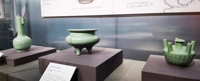 九世纪中期至十世纪中期,代表唐宋越窑烧制水平最高技艺的秘色瓷,在慈溪上林湖窑址群中生产。法门寺地宫出土的秘色瓷器表明越窑青瓷已成为皇家使用的贡御瓷器。北宋中期以后,浙江的瓷业中心已经逐渐转移到瓯江流域,龙泉窑迅速兴起并形成较大规模。南宋时期,龙泉瓷业结合南北制瓷技艺,迅速走向成熟,并形成独特的风格,出现欣欣向荣的局面。龙泉窑青瓷不仅销往全国各地,同时也在外销瓷中占很大的比重,成为宋元时期中国对外输出的主要商品和浙江海外贸易的重要支柱。