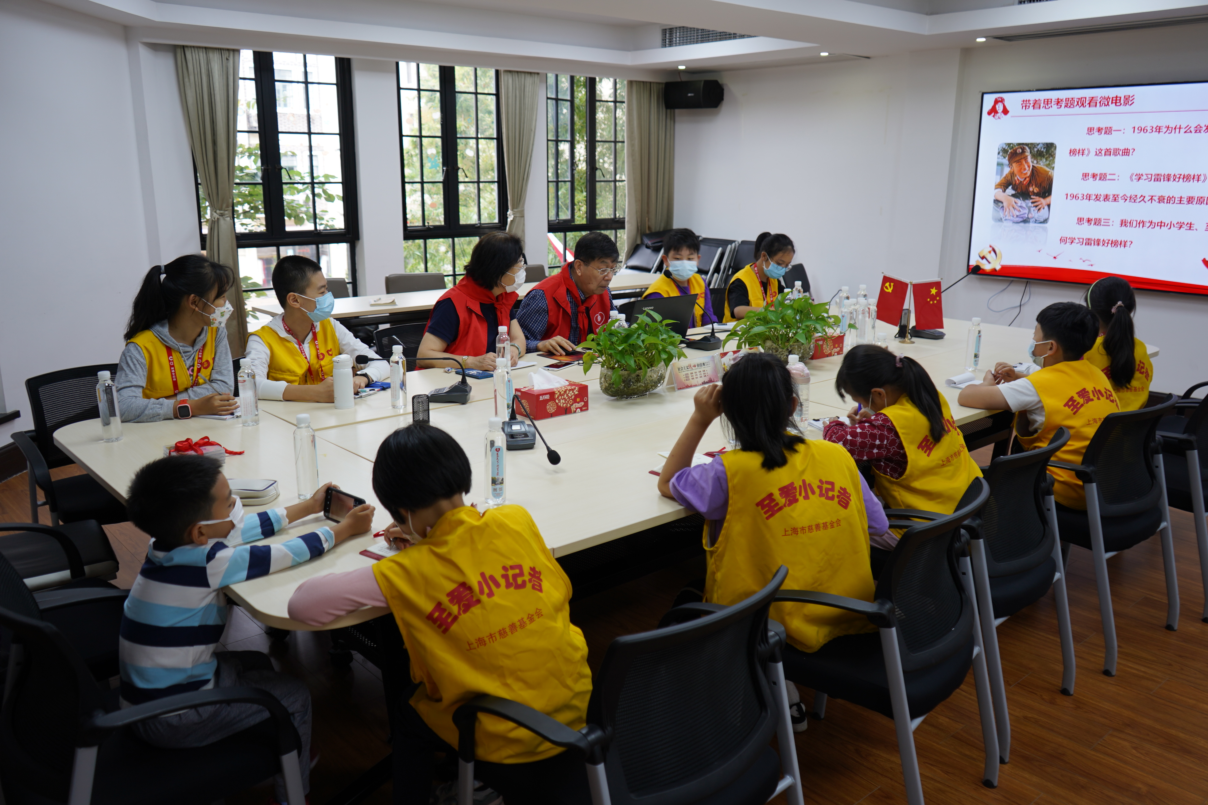 活动现场,上海市老干部大学慈善志愿服务大队的志愿者王益民、胡小燕,以志愿精神为主题,结合慈善志愿服务等理念,为小记者们讲授了一堂生动的慈善党课。讲课期间,小记者们认真听讲,制作笔记,并时不时与老干部互动交流。针对小记者们的提问,两位老党员认真仔细地一一回答。