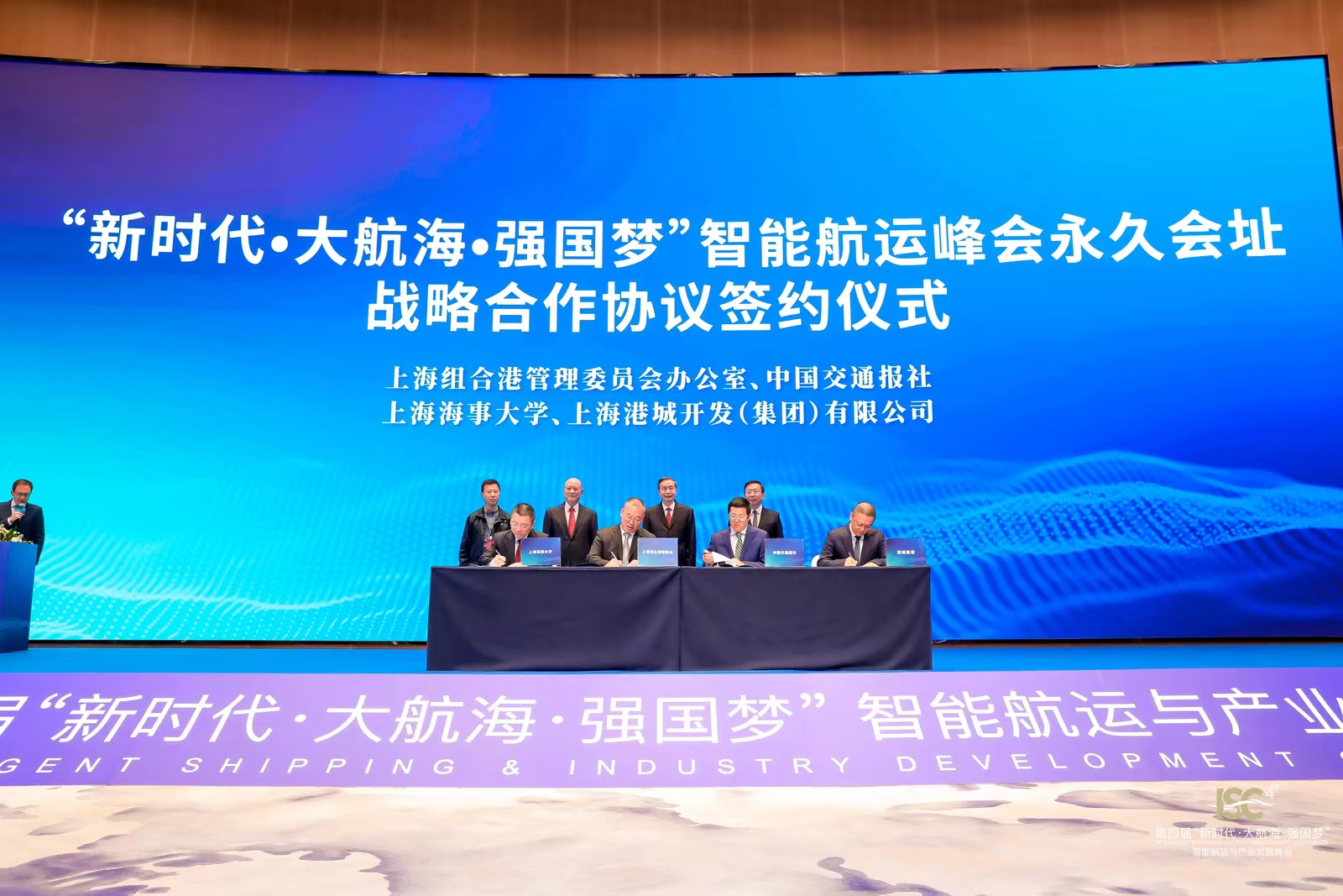 上海组合港管理委员会办公室、中国交通报社、上海海事大学、上海港城开发(集团)有限公司在峰会期间举行“新时代?大航海?强国梦”智能航运峰会永久会址战略合作协议签约仪式,将临港新片区作为峰会永久举办地,并进行长期合作。