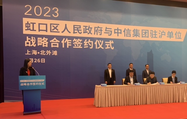 中信集团协同委员会上海区域分会会长,中信银行上海分行党委书记、行长赵元新表示,作为承载上海区域经济发展的重要核心引擎,虹口区北外滩开发建设不断深化,已成为现代化城市发展新标杆,世界级会客厅形象彰显,吸引全球高端要素集聚;金融、航运两大主导产业保持强大发展韧性,推动产业能级不断提升,财富管理、航运服务总部效能持续凸显。目前,上海分行已在虹口区布局5家网点,与虹口区委办及区属企业建立了良好的合作关系。上海分行将以此次签约为契机,进一步发挥综合融资服务优势,以高效的服务及专业的态度,利用好集团全牌照资源,协同联动好集团在沪单位,为虹口区全力加快北外滩开发建设、做强高端服务贸易、提升科创服务能级、加快城市更新步伐及数字化转型发展做出贡献,助力虹口区打造中国式现代化重要展示窗口。