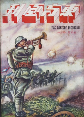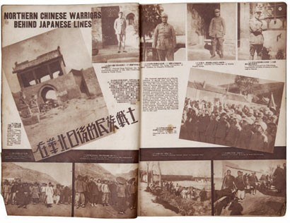 《东方画刊》创刊号,介绍华北地区军民抗战情况。右图上方左起:彭德怀、贺龙、吕正操、刘伯承。