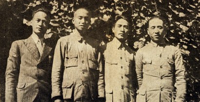 《战时画报》第十一、十二期合刊《晋战专辑》刊登摄影记者沈逸千与八路军将领的合影,颇为罕见,极其珍贵。右起:林彪、彭雪枫、肖克、沈逸千。