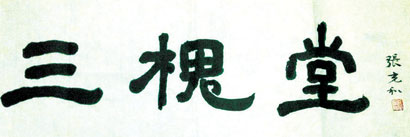 在这之前,小东请张先生为我题写了“三槐堂”,为我的同事季进教授主持的中心题写了“苏州大学海外汉学研究中心”。我看到有几位研究书法的学者在谈张先生的书法时,提到了“三槐堂”书写的特别之处。从波士顿去费城参加亚洲年会时,我问海立和小东是否有机会去看张先生。5月,小东说已经给充和姨妈联系了,我们一起去看她。6月,我再从波士顿到费城。从费城出发时,我说我不好意思再请张先生写字了。小东说,到了以后再看。张先生的书桌上,有一叠她临帖的字,我看了看,分别是《石门颂》和《张景碑》。张先生看我爱不释手,便说:你喜欢就送你。我喜出望外,连说谢谢。张先生在《石门颂》的最后一页落款盖印,又在《张景碑》的几处加了印。方家对张先生的书法成就有诸多评论,我不敢妄言。我喜欢张先生的书法,是因为我在先生的笔墨中读到了传统,读到了已经散去但依然在纸背的历史烟云,读到了一位文人的胸襟、性情和人格。张先生不是我们今天意义上的职业书法家,职业书法家常常远离书法艺术的最高境界。张先生恢复了书法的本来意义。