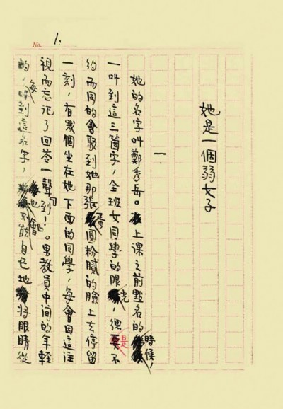 手稿提供一个了解作家写作过程的重要门径。我们可以通过手稿来分析作家是怎么修改自己的作品,从而进一步分析作家的创作心理。《她是一个弱女子》手稿本从头至尾,几乎每一页都有修改,大部分用黑笔,偶尔用红笔的修改,或涂改,或删弃,或增补,包括大段的增补。有时一页修改有九、十处之多,还有一些页有不止一次修改的笔迹。郁达夫创作这部中篇小说的认真细致、反复斟酌,由此可见一斑。品读手稿,我们可以揣摩郁达夫怎样谋篇布局,怎样遣词造句,怎样交代时代背景,怎样描写风土人情,怎样设计人物对话,怎样塑造主人公形象,一言以蔽之,可以窥见郁达夫是怎么修改小说的。