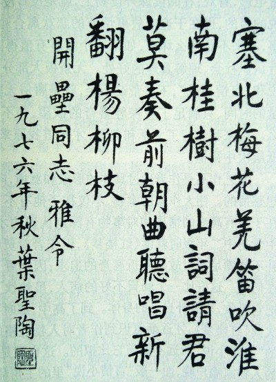 正是徐开垒与叶圣陶存在着这样的因缘关系,徐开垒在担任文艺副刊主编期间,发表了不少叶圣陶诗文作品。一次,徐开垒抄得叶圣陶怀念丰子恺的诗作,叶圣陶收信后欣然写上注解于1979年3月27日寄回徐开垒(《怀念子恺》刊《文汇报》1979年4月11日)。