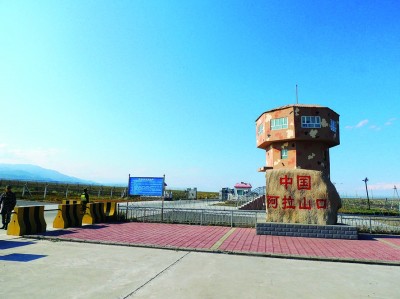 在上面有横梁的观景台瞭望周边景色,远处以原始的大自然景观为主——低矮的山峦、草原,可以看见国界线——瞭望台、串拉的铁丝网。十公里开外的一小群建筑物——哈萨克斯坦“多斯托克”(“友谊”的意思)关卡。中国三层楼的瞭望塔更接近沙漠的颜色。楼前有一个具有中国传统的石头标志——在巨大的花岗岩上刻着红色的大字:“中国阿拉山口”。在塔楼后面,一对士兵把守铁门。不是摆样子,而是真正通往中国的大门。一连串红色的立方体驶向地平线,那是一列货运火车。还能看见远去的客运列车,列车的车厢是苏式的绿色——每周两趟从乌鲁木齐经过阿拉山口至阿拉木图和哈萨克斯坦首都阿斯塔纳。整个铁路枢纽都看得清清楚楚,有很多铁道,班列就在眼前来来往往,它们正在通过“国门”。往对面看有一个像牌楼的银色建筑,上面镶嵌着中国国徽,写着“阿拉山口口岸”。