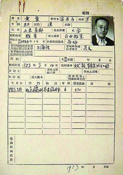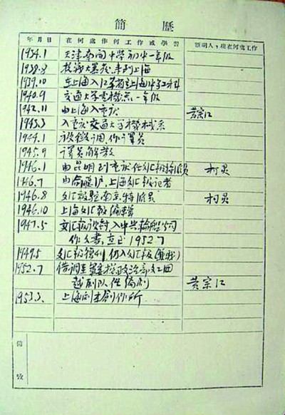 近见黄裳毛笔书写的简历。黄裳于1953年填写的这份简历,对于了解其具体生平尤其是学生工作经历,对于编纂其年谱,均具重要文献价值。下略作释读。