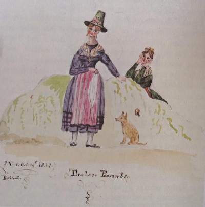继续翻看《维多利亚女王的写生簿》中的插画,女王画自己的孩子,画孩子们做游戏,画他们穿上漂亮的衣服;她也画室外的风景,画法国士兵,画法国王室的公主,画她见到的第一个中国男孩,画身穿苏格兰格子裙的王子,画在苏格兰高地遇到的农户的孩子……她的某些画作也蕴含着强烈的政治色彩,比如她画的全家福似乎在表明家庭观念——维多利亚时期,英国政府首次用法律保护家人和孩子。她经常画和德国主题有关的画,流露出她对母亲和她丈夫的家乡的深情。她画的异域风景以及外国人,表明当时的英国对其他国家的憧憬。