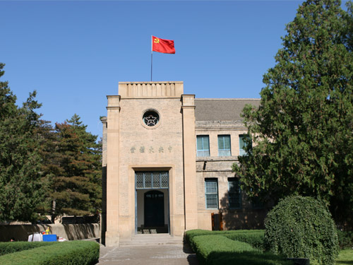 整个建筑砖石结构。正厅采用跨距达15.6米的大石拱代替木梁,是一个极大的技术突破。由于伐木烧炭多年砍伐,当地可以用作大梁的木料已经十分缺乏,而石料资源在当地却是很丰富的,并且当地石匠师傅们的技术水平非常精湛。所以,礼堂正厅采用石拱结构,拱与拱之间用木料连结,再以木板盖顶。这些木料同时又用作施工脚手架和挂滑车的木支架,当礼堂造好后木料也已基本用完,减少浪费。为了安装巨大的石拱,杨作材和中央机关工程师张协和合作,研究具体施工办法,请温家沟农具厂(即兵工厂)特制了一个五轮复式滑车,利用滑轮组的原理顺利地完成安装任务。这些石拱属于半圆拱,其所承受的力可以直接传递到地下,不会产生侧推力。为了谨慎起见,建设者们在东西两侧分别修建小会议室和阅览室,以抵御半圆拱万一产生的侧推力。这样,造型上的体块结构与功能上的承重安全相结合,天衣无缝。此外,为了提高大石拱的承载力,参照隋代赵州桥的结构形式,在大拱上又修了几孔小型砖拱。然后用单砖墙砌平,使它既能承重,又显得外观平整、美观。内部视觉空间像一个巨大的窑洞,给人朴实亲切温暖感。