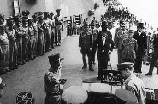 1945年9月2日,泊于东京湾的密苏里号战列舰,在包括中国在内的9个受降国代表注视下,日本在投降书上签字。随军记者朱启平目睹了这一幕。签字完毕,一看表,时间正是9点18分。