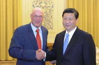 国家主席习近平2日在人民大会堂会见美国前财长保尔森。