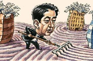 安倍上台以来积极实施所谓的“安倍经济学”,尝试挽回日本经济长期以来的颓势。一年多以来,安倍经济学“高开低走”,经济增长率一路下滑,特别是去年第四季度实际GDP增幅仅为0.3%,远低于市场预期。但在股市,日经指数却一路“高歌猛进”,全年猛涨65%,成为海内外游资的“百家乐”场所,安倍“经济”也随之变为安倍“泡沫”。在今年4月消费增税的背景下,安倍经济学似乎已成强弩之末。