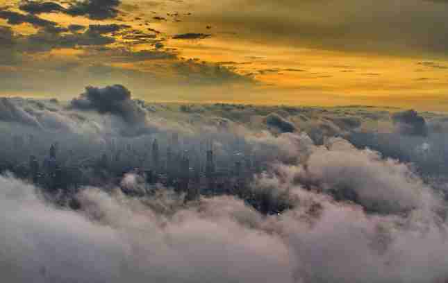 拍得多了,就想拍得更好。魏师傅说,最好的照片大部分是在塔吊爬升到500米高之后拍到的,因为云层通常悬浮在这个高度;而白软得像棉花糖一样的云层是可遇不可求的,得前夜下过暴雨,第二天放晴,还得赶早,七点过后云层就蒸发升腾了。