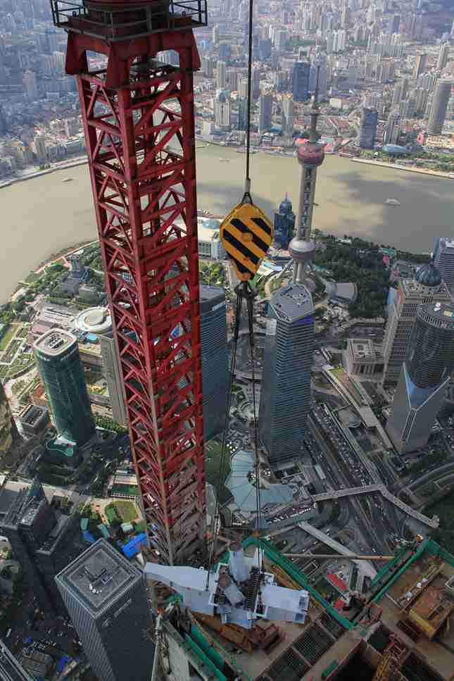 ▲2013年10月17日摄于上海中心。构图时特意把吊钩放在金茂大厦顶端。