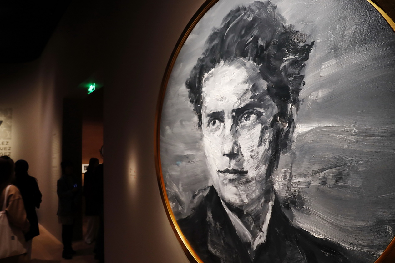 展厅入口的青年路易·威登(Louis Vuitton)肖像,为中国艺术家严培明的绘作。