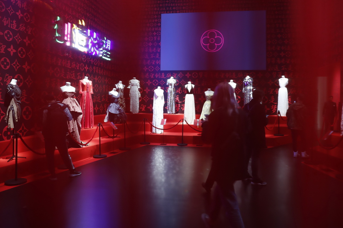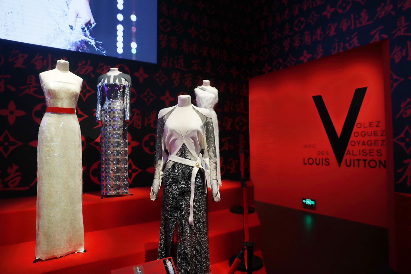 这段精彩的主题之旅由艺术总监与布景设计师Robert Carsen精心设计,以具有舞台美学的戏剧性场景,呈现一场视觉的盛宴。15个篇章的旅程,以一个深具现代风格的古老硬箱拉开序幕,此件路易威登最具象征性的作品同时体现了品牌的经典标志与大胆创新的精神。展览呈现来自路易威登历史档案的展品与文件资料,也包括由巴黎时尚博物馆加叶拉宫出借的精选作品。最后一个展厅特别献给红毯华服,在中国艺术家何岸设计的霓虹灯装置空间中展现极具标志性的定制服装。展览的尾声则专门介绍了每天都投入路易威登工坊工作的品牌工匠所演绎的精湛工艺。