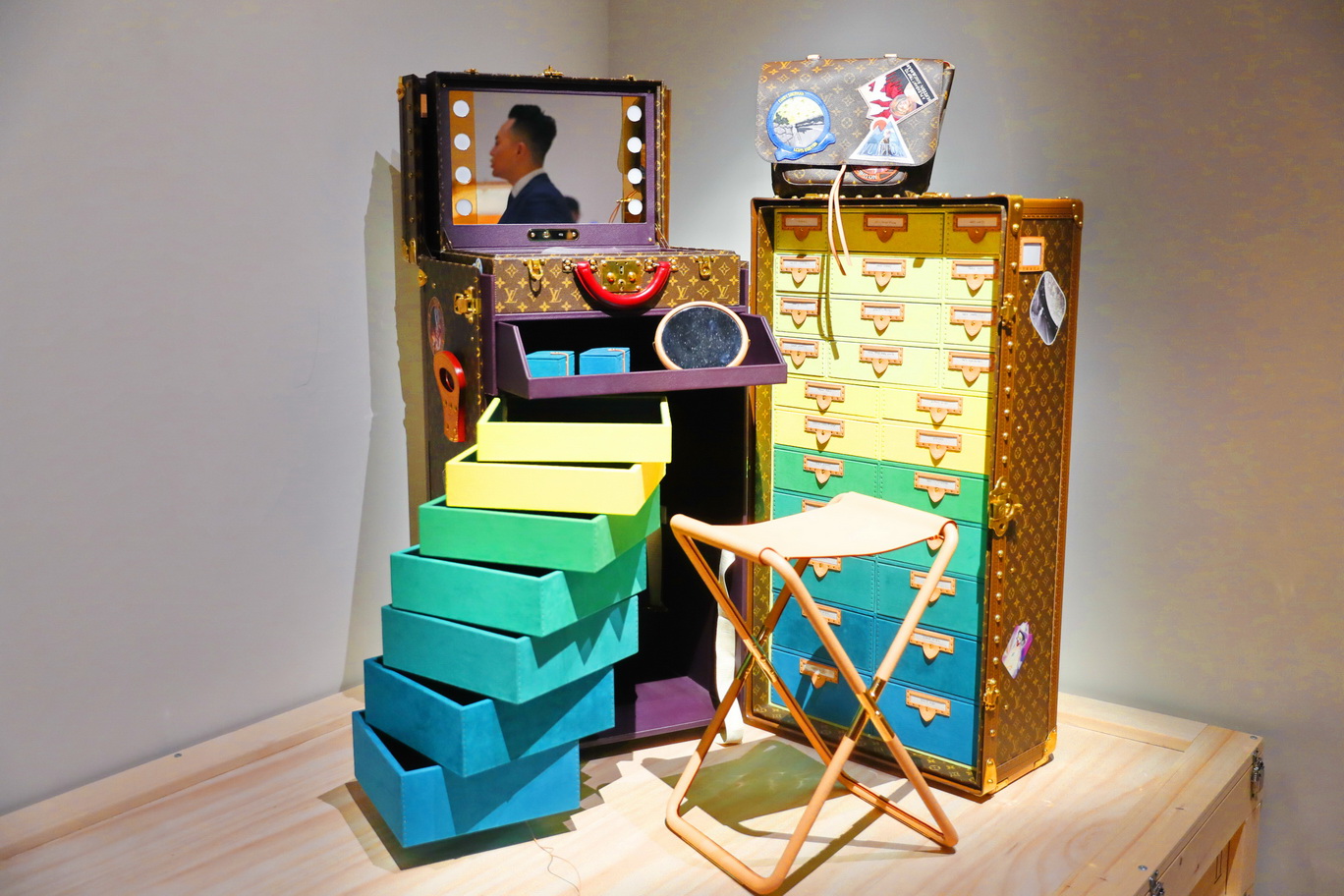 展览由中国艺术家严培明所绘制的路易威登青年肖像拉开序幕,带领观众开启一趟穿越路易威登世界的精彩旅程。从19世纪交通工具的快捷进步开始,路易威登紧随时代的脚步,孕育出层出不穷审美与实用并重的作品,满足了不同年代的旅人想要探索未知、看世界的渴望。