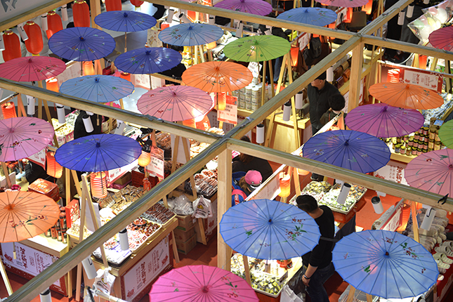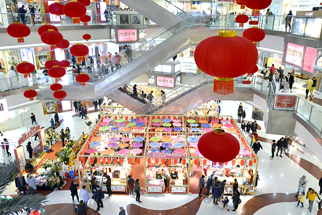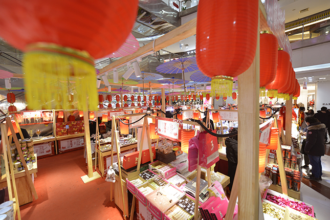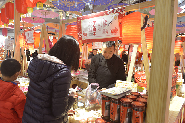 春节期间,龙之梦购物中心(长宁店)别出心裁地在红中庭打造了一条迷你“民俗街”。