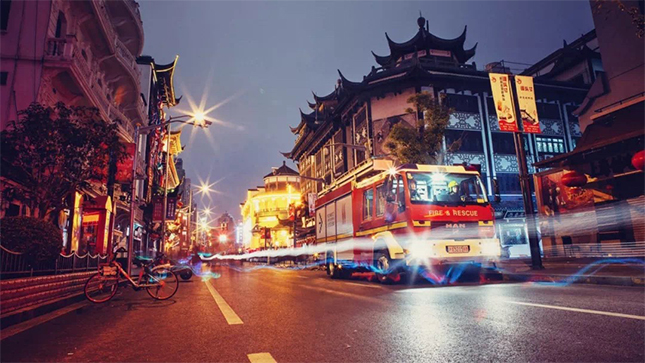 ▲黄浦区消防应急救援队员在豫园驻守,确保新春民俗灯会安全。