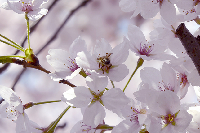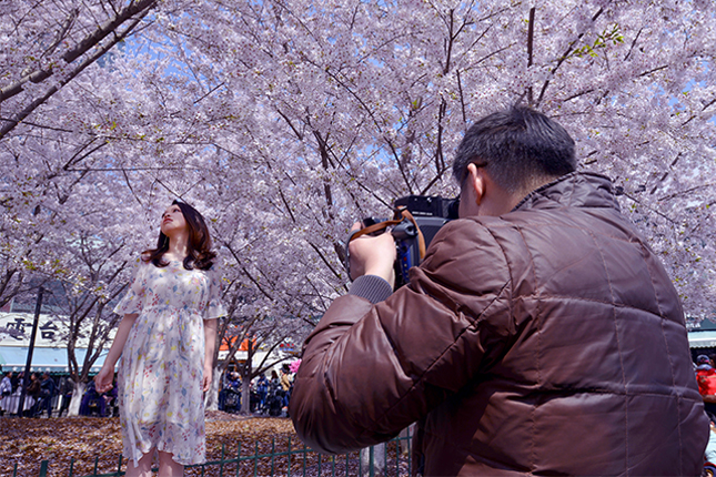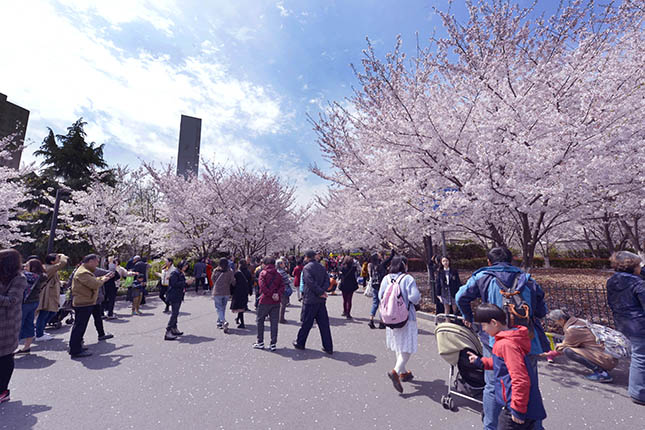 市民游客们沉浸在上百株染井吉野樱花树全面盛放的壮美景观中流连忘返。