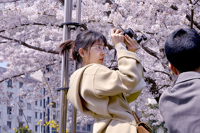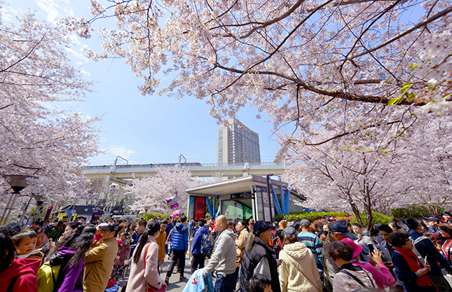 3月的最后一天,位于鲁迅公园西南角的“中日樱花园”内,慕名而来的游客们人山人海、络绎不绝,在粉白色的花海中市民游客们不约而同地拿起手中的手机与相机共同记录下这一美好的时刻。