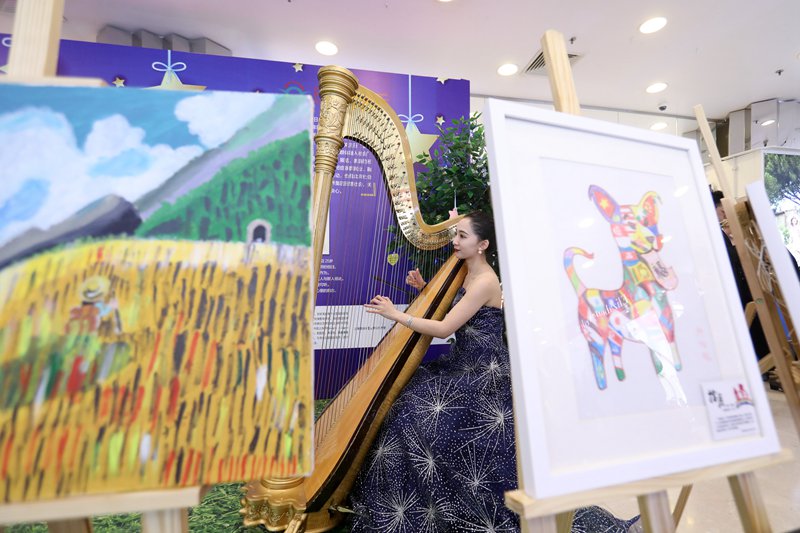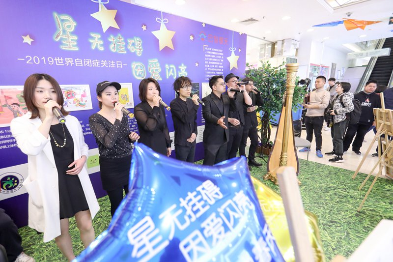 活动现场,除了美术作品和艺术衍生品的展示、义卖;阿卡主义人声乐团用美妙的无伴奏人声合唱为孩子们助力、爱心人士们踊跃参与义卖,共同点亮“因爱闪亮”许愿树、自闭症人士更是通过合唱《感恩的心》感谢各方的关爱。