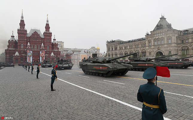 为庆祝卫国战争胜利74周年,俄罗斯首都莫斯科红场5月9日举行盛大阅兵式。以往每年胜利日阅兵展示的都是俄罗斯当下最先进的武器装备,今年的胜利日阅兵有所不同,新老战车齐上阵,在阅兵式的打头阵的队伍中甚至能看到来自二战时期作为卫国战争胜利象征的T-34/85型中型坦克。