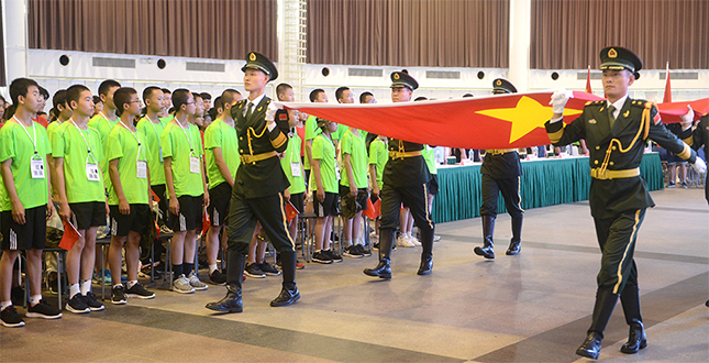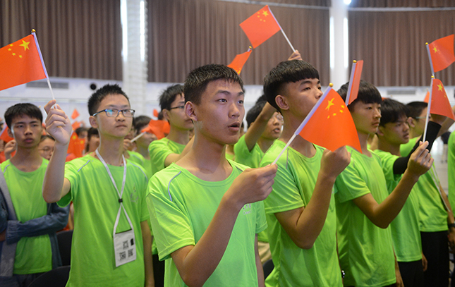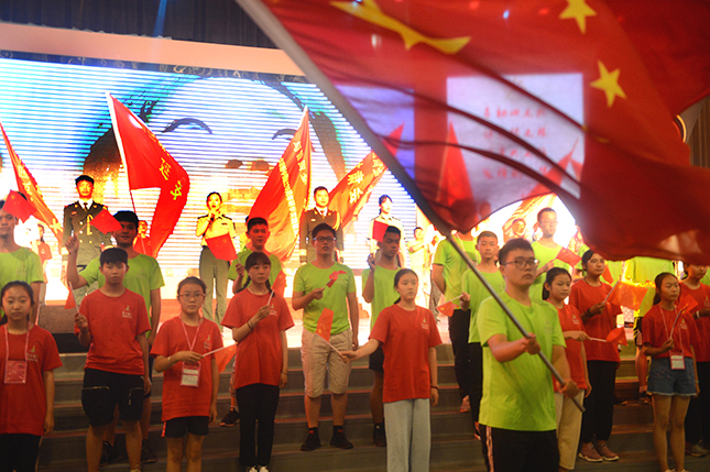 7月28日,来自井冈山、遵义、南昌、延安、甘肃、西藏和新疆等8个地区的中小学生参加的“与国同梦 你我担当”——庆祝新中国成立70周年中小学生研学实践教育主题活动,在上海市青少年校外活动营地——东方绿舟开营。