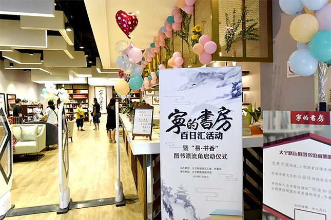 2019年7月30日下午,在大宁国际商业广场“宁的书房”内,举行了书房开放百日汇活动。活动现场,主持人带大家一起回顾了书房开放至今的点滴变化,参加活动的商圈白领和周边居民表示,这种点滴变化带来的是文化体验感的增强。大宁路街道致力打造一个具有鲜明特色的社区图书馆馆外服务点,让“宁的书房”成为白领和居民身边不可或缺的好伙伴。同时,借此活动正式启动静安区首个在白领商圈内自治运行的图书漂流角“易?书香”项目, 丰富白领文化阅读生活,满足周边社区居民对图书置换的需求。