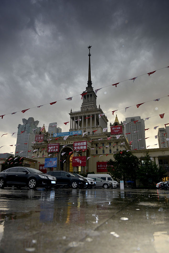 8月18日下午17时左右,上海市静安区暴雨倾盆伴随电闪雷鸣。市民出行明显可以感受到室外体感温度的骤然下降,即便如此也依旧无法阻挡沪上的读书爱好者前往上海书展读书购书的热切心情。