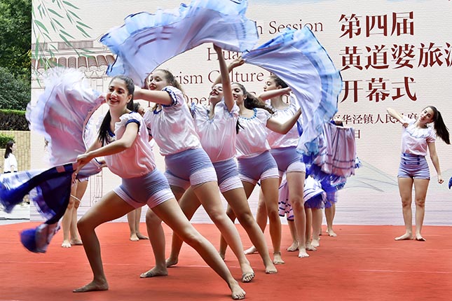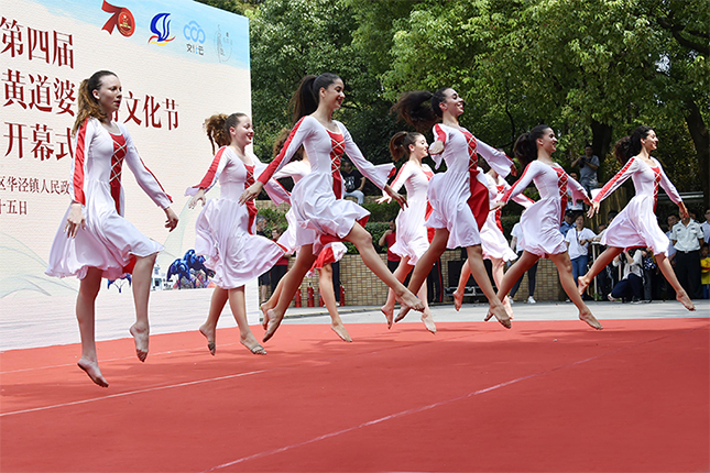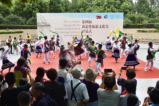 今天上午,2019年华泾镇第四届黄道婆旅游文化节在华泾社区舞蹈队精心排演的舞蹈《编织彩虹》中拉开序幕,黄道婆的匠心精神和奉献精神随着舞动的梭子传播到大街小巷。