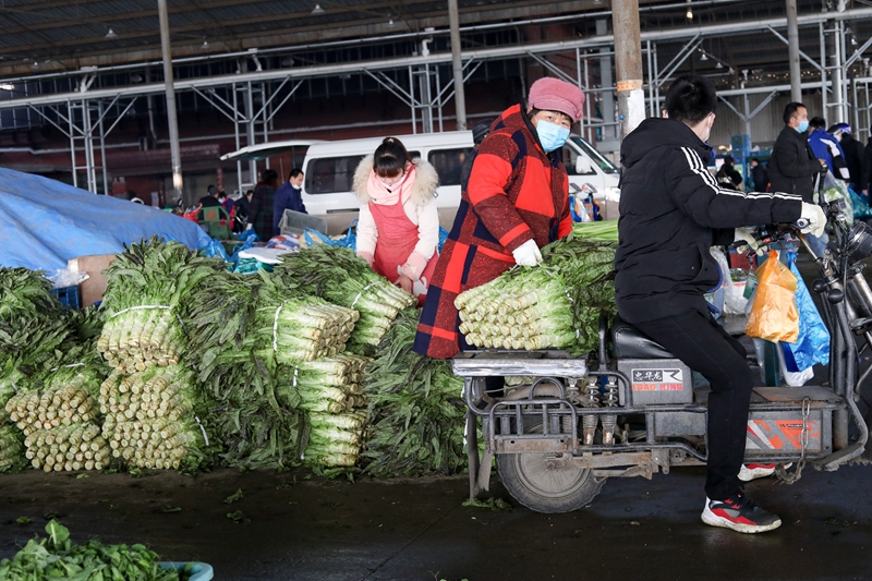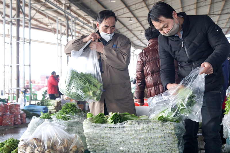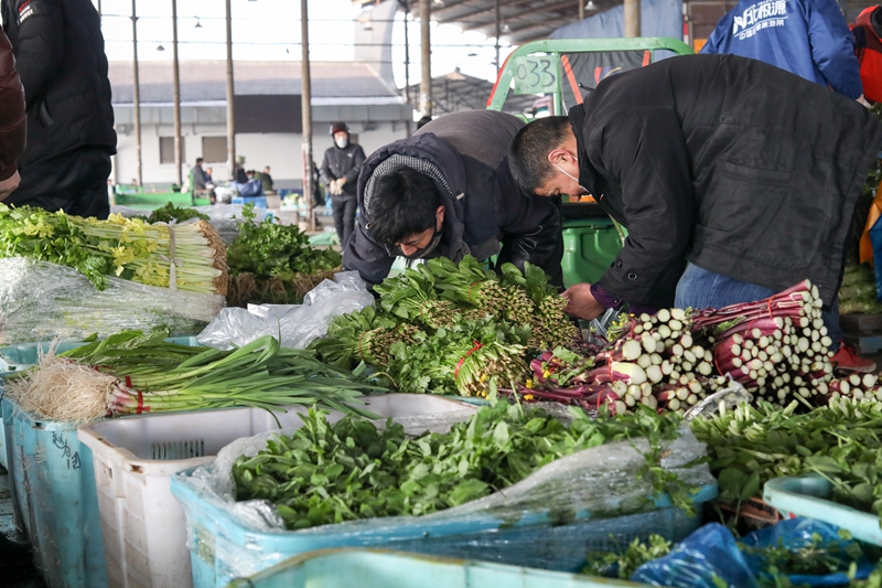 据悉,曹老板所在的三角地广灵菜场春节期间天天开门迎客,70个蔬菜摊位一半以上的摊主已经回到菜场,开始营业。菜场负责人蒋先生判断,随着摊主近一步回归,近期菜价还将继续回落,市民朋友大可放心,适量选购新鲜蔬菜。