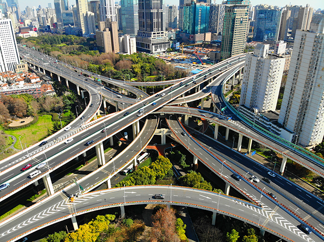 延安东路立交桥车流相较上周有明显增多,上午上班高峰时段曾出现黄色拥堵,中午时段东西南北四个方向通行恢复顺畅。